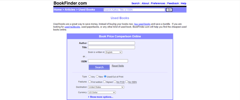 With multiple millions of used, new, and out-of-print books listed on its site, BookFinder.com is another great platform to find the cheapest books online. It’s a metasearch engine that searches for books across multiple online retailers. This makes it easy to compare prices and find the best deals.