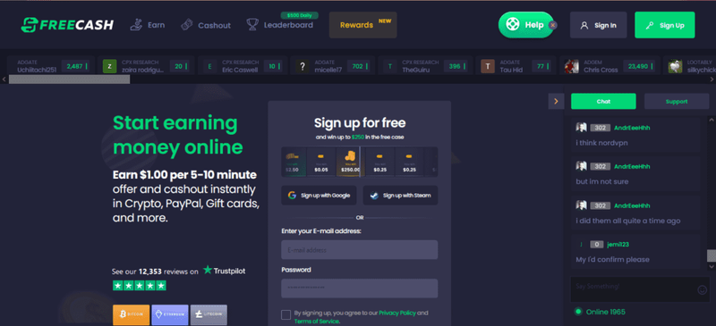 On top of it all, Freecash offers a daily leaderboard from time to time where the top earners get cash prizes to top their daily earnings. You can withdraw coins through PayPal, VISA, Amazon gift cards, and even cryptocurrency like Bitcoin.