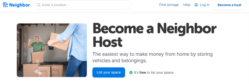 Neighboris one of the top platforms that people use to find storage nearby. So, you can become a host on Neighbor and earn extra bucks renting out your space to other people in your location. And you don’t pay a dime!